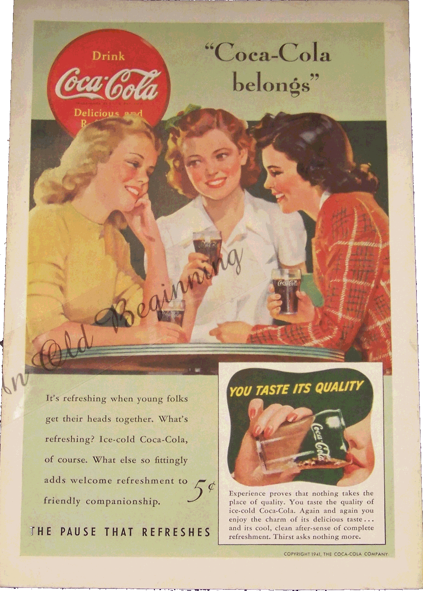 Coca-Cola 1941 three girls sitting at around table from National Geographic April 1941 Condition: good some water spotting in white margin Price: $ 8 Item: TSH 5