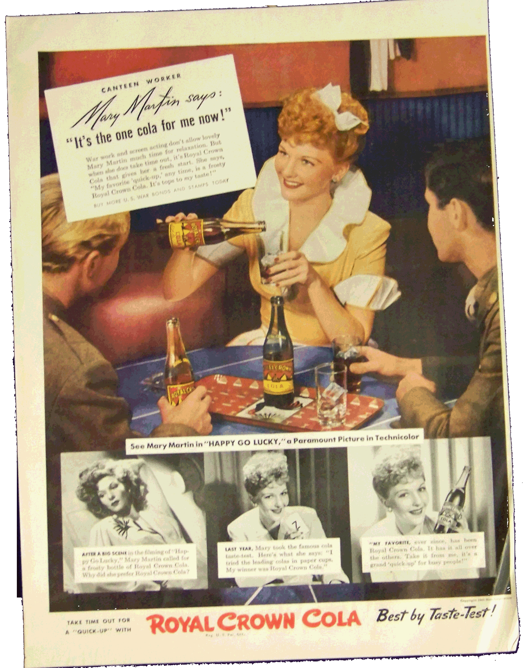 Mary Martin for Royal Crown Cola also suggests seeing her in Happy Go Lucky 1943 Condition: lower right corner has been folded and straighten Price: $12 Item: TSH 8