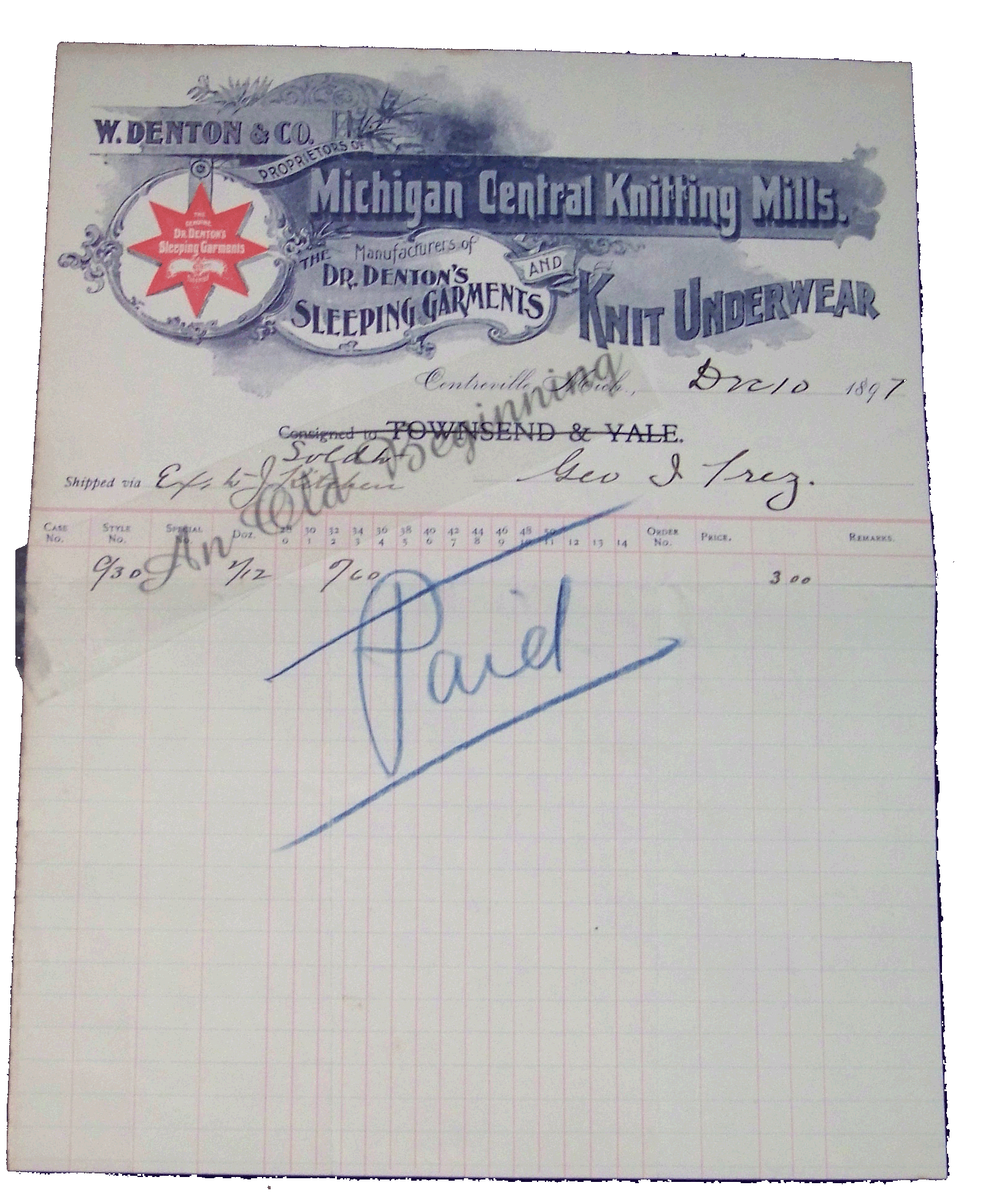 Dr Denton's Sleeping Garments & Knit Underwear Michigan Central Knitting Mills Dec 10 1897 Condition: Very Good Price: $10 Item: BHD 6