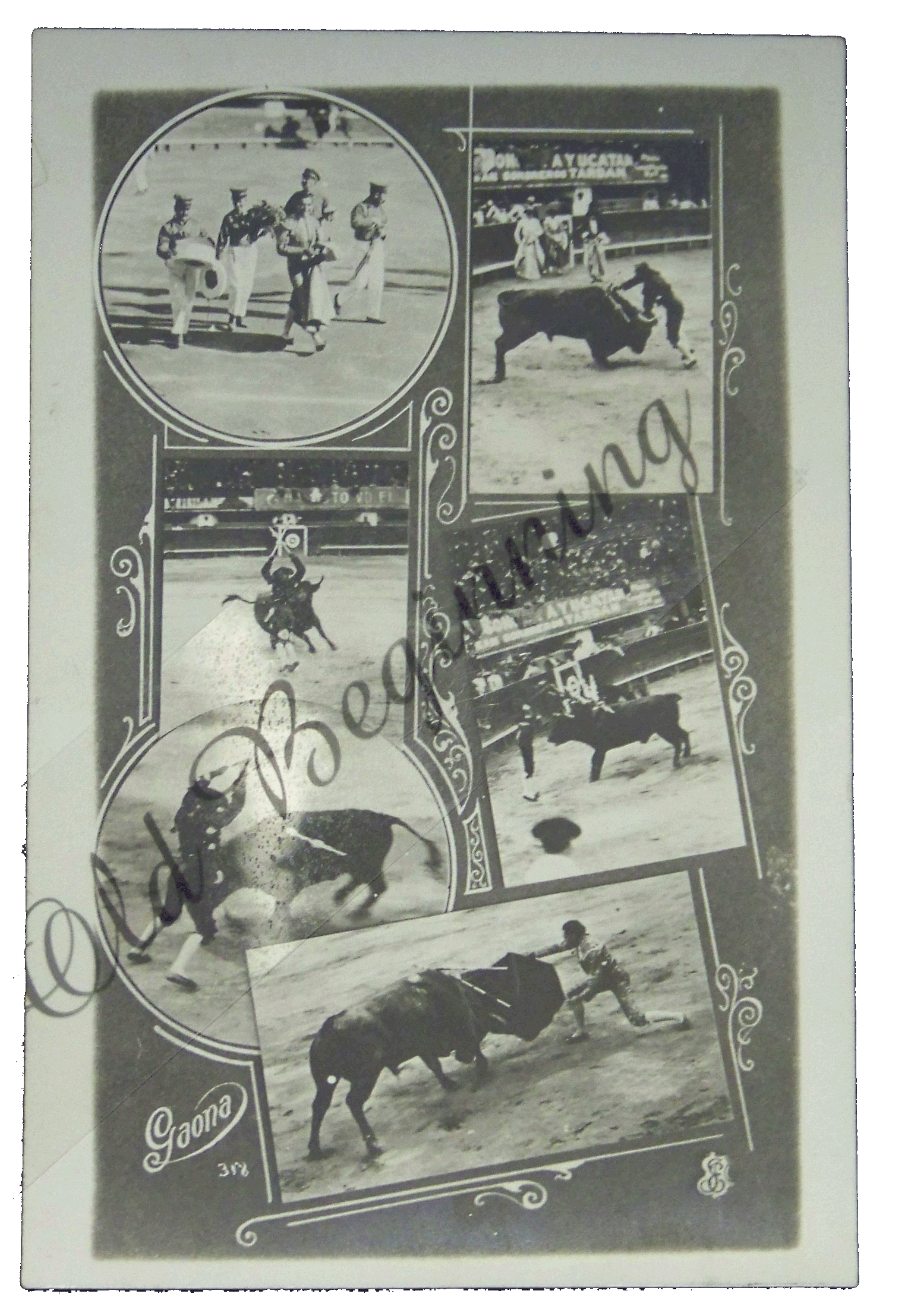 Real Photo Gaona 318 Bull Fight multi picture, back says post card Carte Postale cartolina Postale tarjeta postal, the center line say Agfa Condition: Fine Price:$10 Item: PCD 10