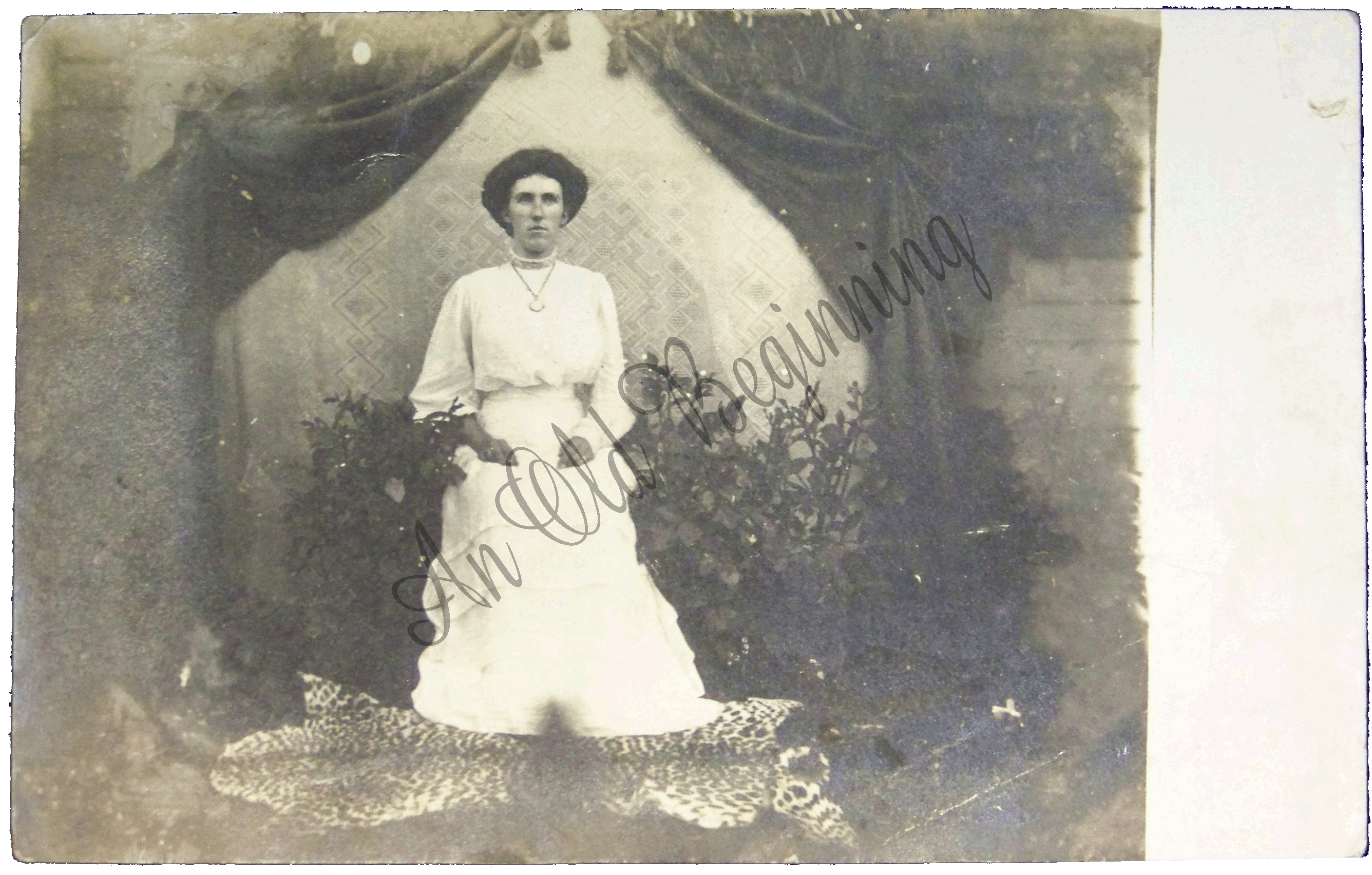 Real Photo women sitting with her feet sitting on leopard rug Were the stamp goes it has CyKo
