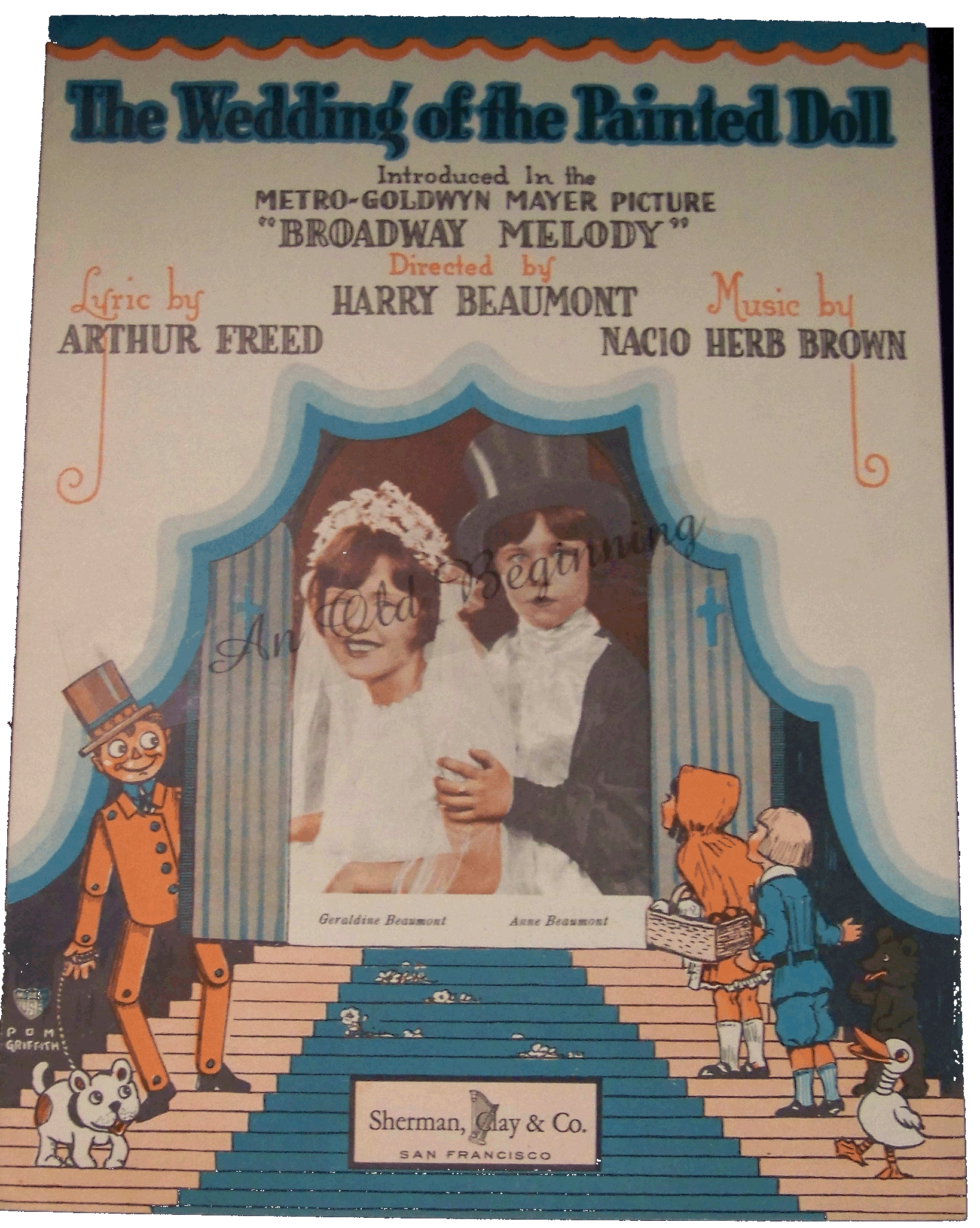 The Wedding of the Painted Doll Lyric by Aurthur Freed Music Nacio Herb Brown picture of Geraldine and Anne Beaumont 1929 Illustrated by P O M Griffith Condition: Very Good Price: $7 Item: SMC 4