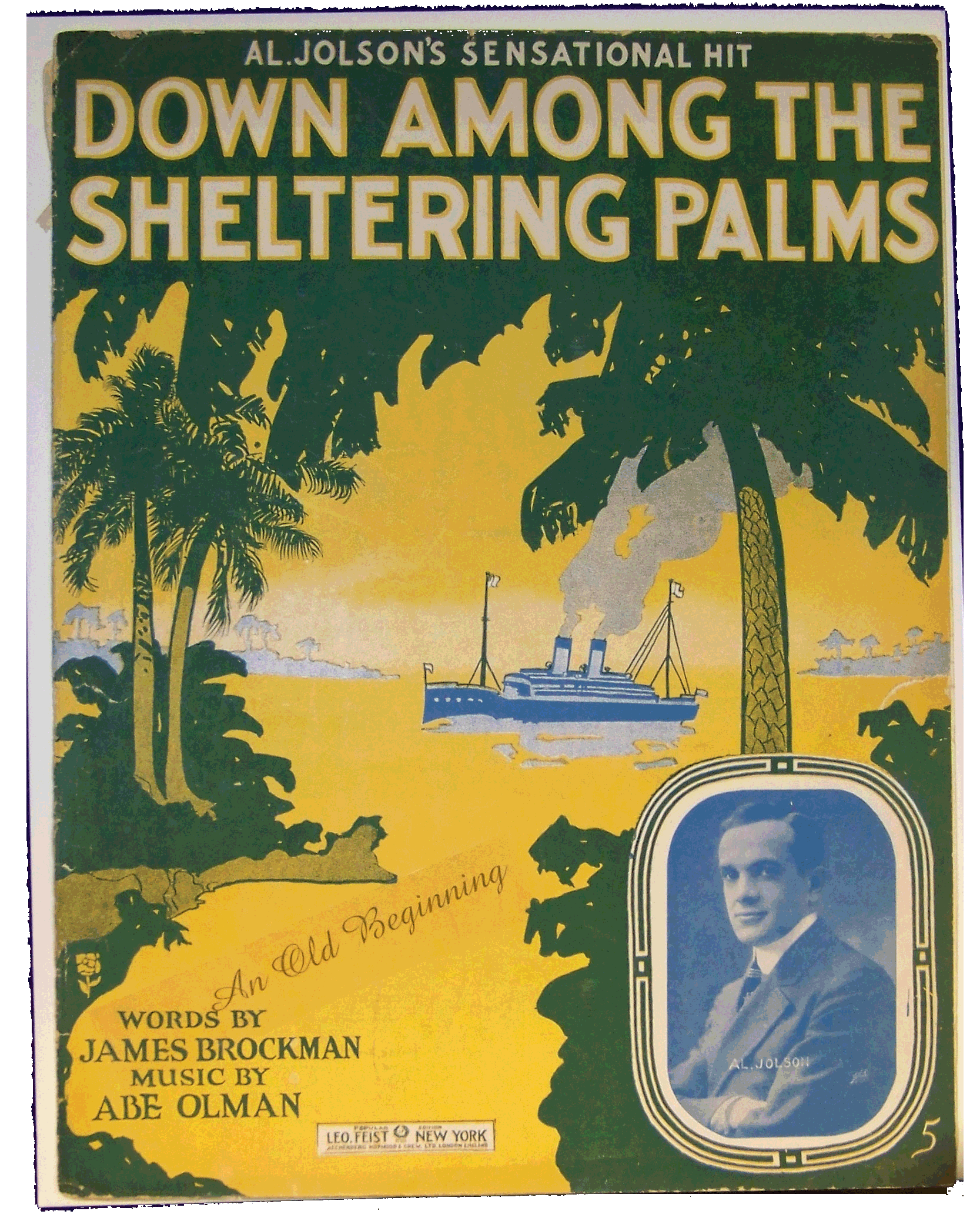 Al Jolson's "Down Among this Sheltering Palms" Picture of Al Jolson on front. Front page is separated from the other pages of music Good condition Price $15 Item: SMC 10